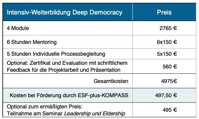 Die Intensiv-Weiterbildung Deep Democracy vermittelt dir ein bewusstseinsorientiertes, inklusives Modell zur Begleitung von Gruppen-, Team- und Konfliktdynamiken. Du lernst, Spannungen, Widerstände und Konflikte als wertvolle Impulse für nachhaltige Veränderung zu begreifen und konstruktiv zu nutzen.